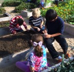 If you are creating a new landscape, try to locate the garden and the sandbox near a door or along a pathway that you use often. Permaculture designers encourage us to locate herbs, salad crops and soft fruits such as strawberries near the door so they will be noticed and harvested in your travels. I would add that this is also the place for the sandbox. The toddler on his way through the door, going in or out, who spots her favorite shovel, will go right to work. This is your cue to grab the harvesting baskets left near the door. You can probably pick greens and herbs for dinner and perhaps pull some weeds while your toddler harvests an understanding of soil permeability or gravity or notices that his nasturtiums are blooming.
